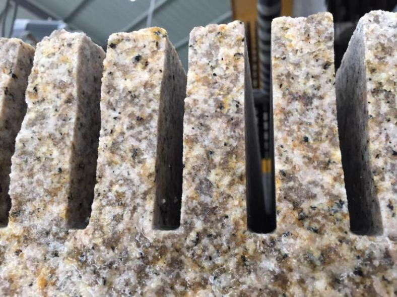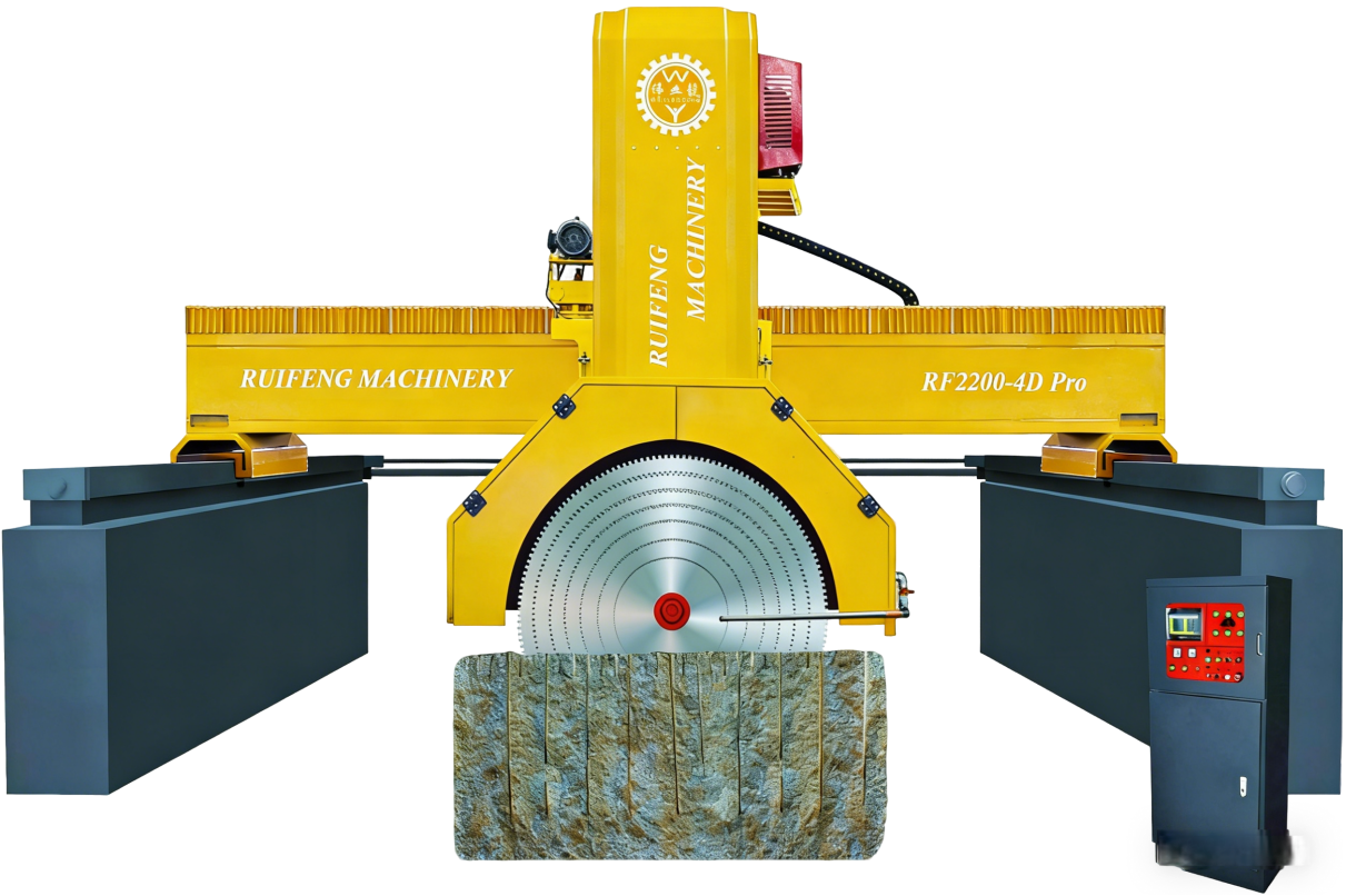Heavy-duty block cutting machine with a enlarge cross-beam in 8500mm(length) × 800mm (height) × 700mm(width). And at the same time with higher power motors, cables and other electronic control components. The guide column is made of 180mm solid round steel. The weight of the whole machine is greatly improved, it can cut 2-6 blocks at the same time, which greatly improves the output and quality.